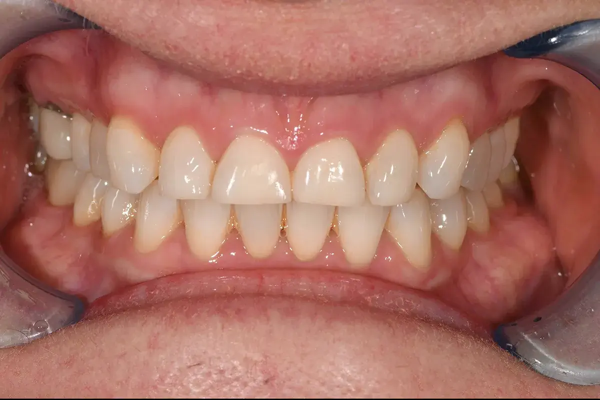The patient reported high satisfaction with the final outcome, noting increased confidence in her smile. Follow-up review confirmed good healing, color stability, and tissue health. She remains on a maintenance program and is aware of the long-term benefits of continued hygiene and whitening upkeep.