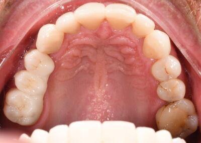 The first phase of treatment focused on addressing the underlying decay and gum disease. Decay risk factors were managed through tailored preventative strategies, including improved oral hygiene practices, fluoride therapy, and dietary modifications. Gum disease was treated with professional scaling and root planning to remove plaque and tartar buildup, followed by ongoing periodontal maintenance to promote healthy gum tissue and prevent disease progression.